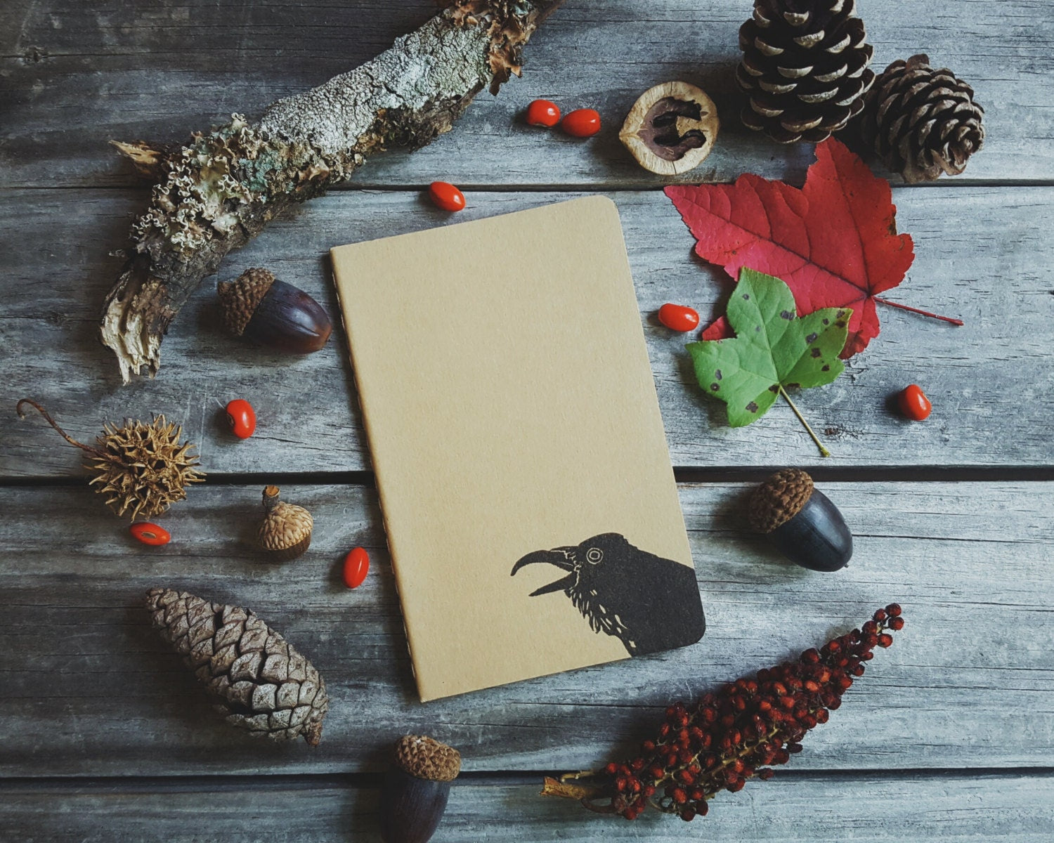 This little pocket size journal featuring a hand carved blockprint of a calling crow will come in handy for the outdoors lover! Since it fits in your back pocket, you can take it just about anywhere! And as a little bonus, the journal itself has a little pocket on the back for you to stash away a little love note or a grocery receipt!