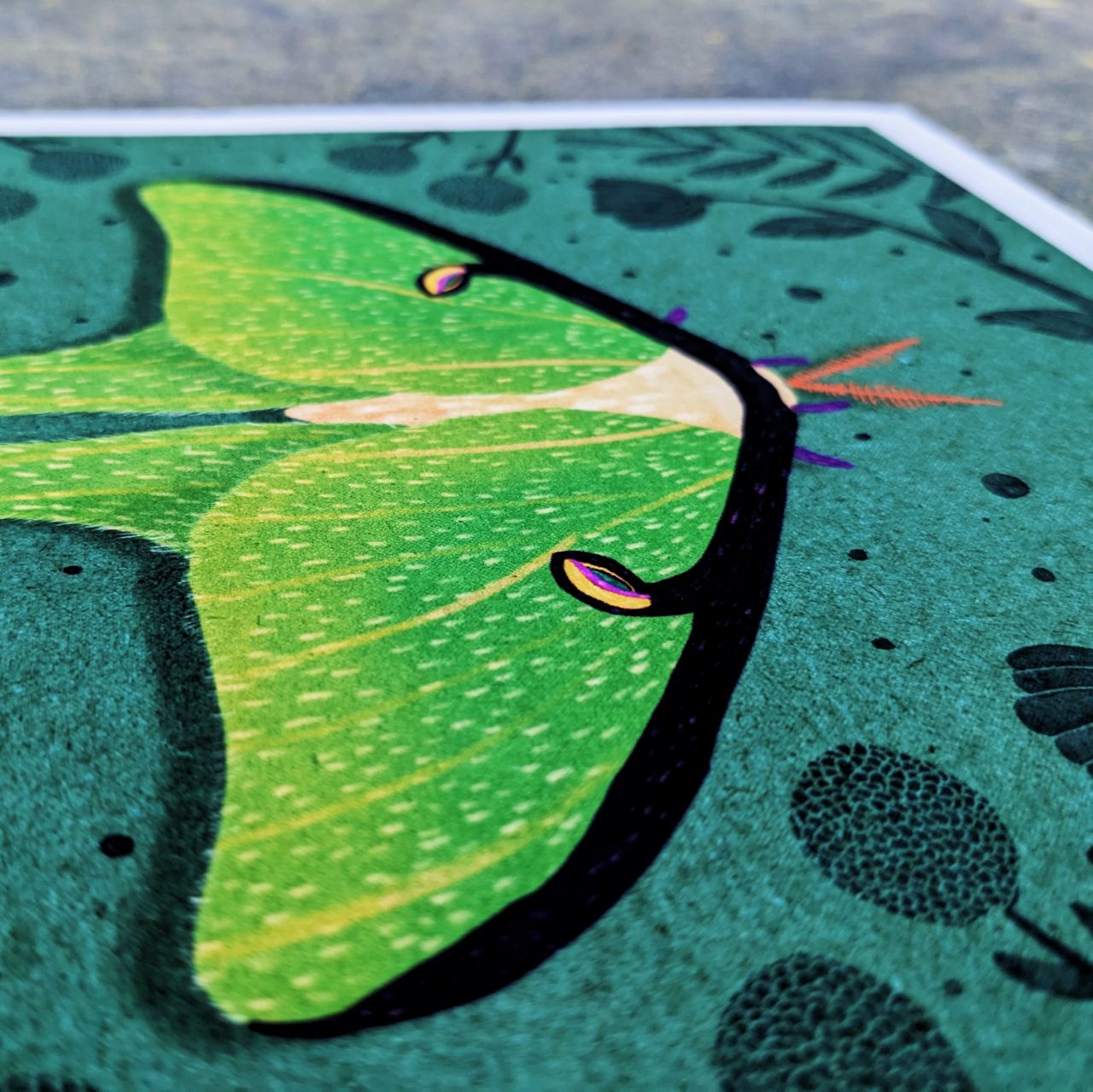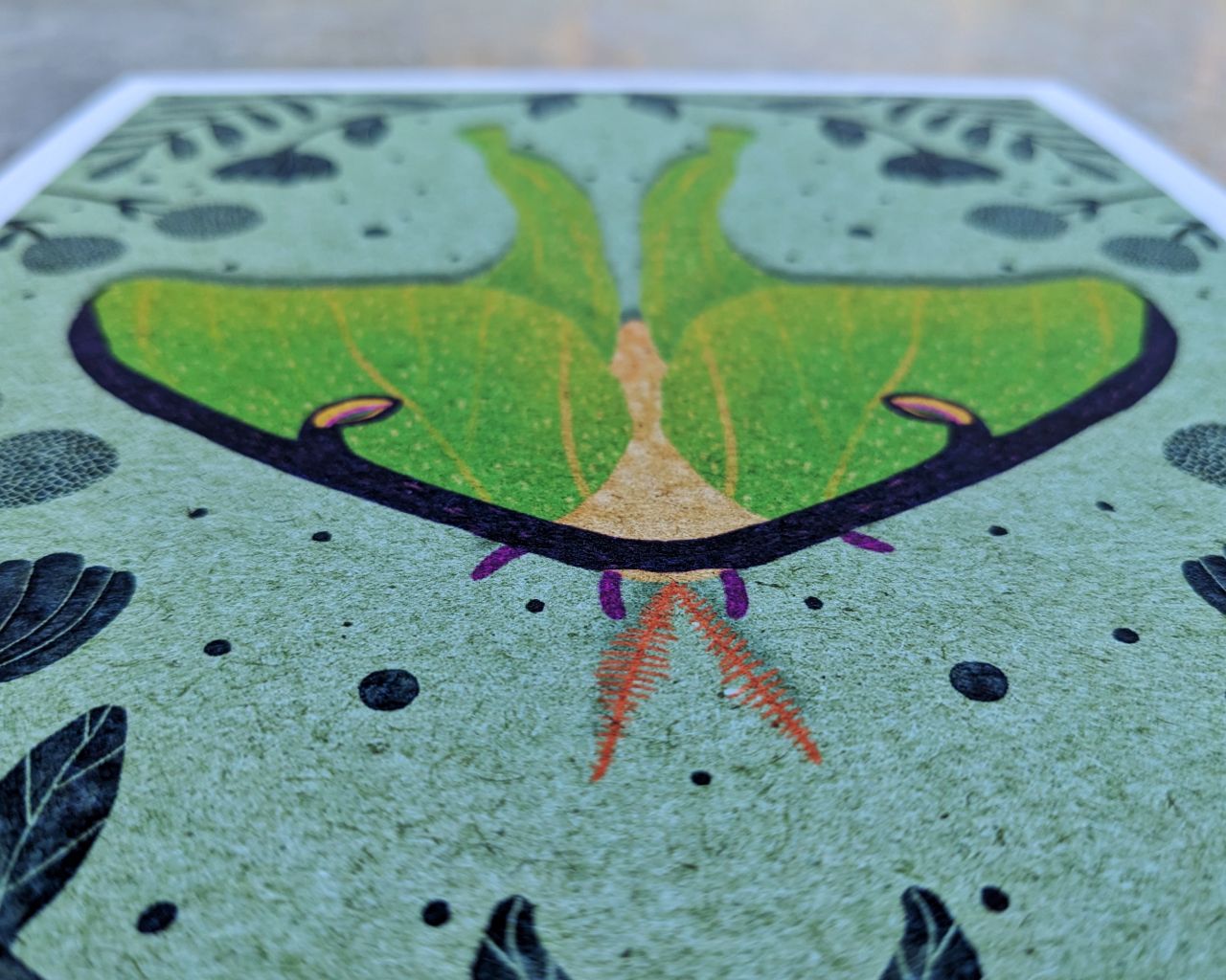 While only living a few days upon emerging from its cocoon, the luna moth manages to capture an elegant beauty that defies time. Fragile and tender, the moth braves its final days in search of a mate to ensure another season of life, a new generation that will continue to capture our imaginations. Fleeting beauty, transient life, an homage to the ephemeral.