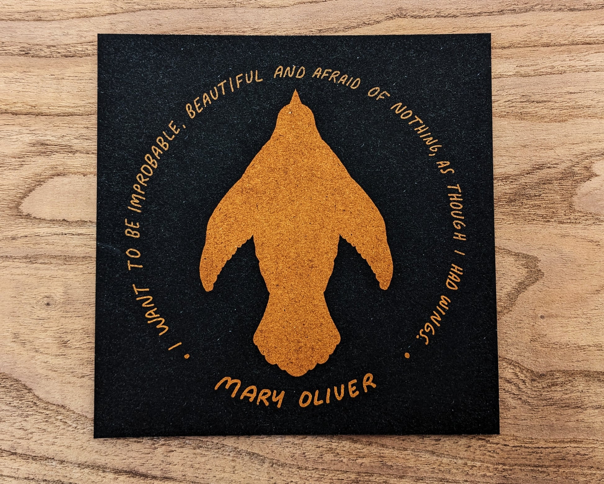 Inspired by Mary Oliver's poem, "Starlings in Winter," this illustration contains a mantra that I think we should all hold in our hearts: "I want to be improbable beautiful and afraid of nothing, as though I had wings."