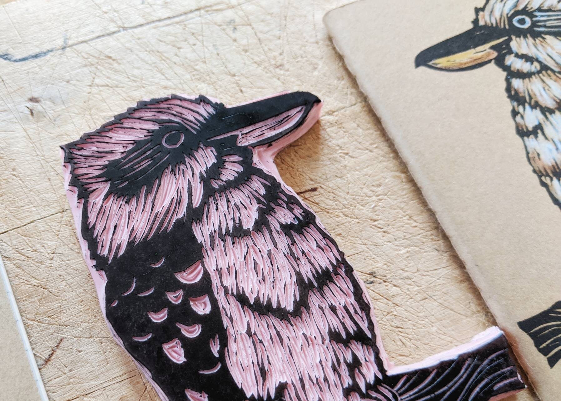 This little pocket size journal featuring a hand carved and hand colored blockprint of a kookaburra will come in handy for bird lovers! Since it fits in your back pocket, you can take it just about anywhere! And as a little bonus, the journal itself has a little pocket on the back for you to stash away a little love note or a grocery receipt!